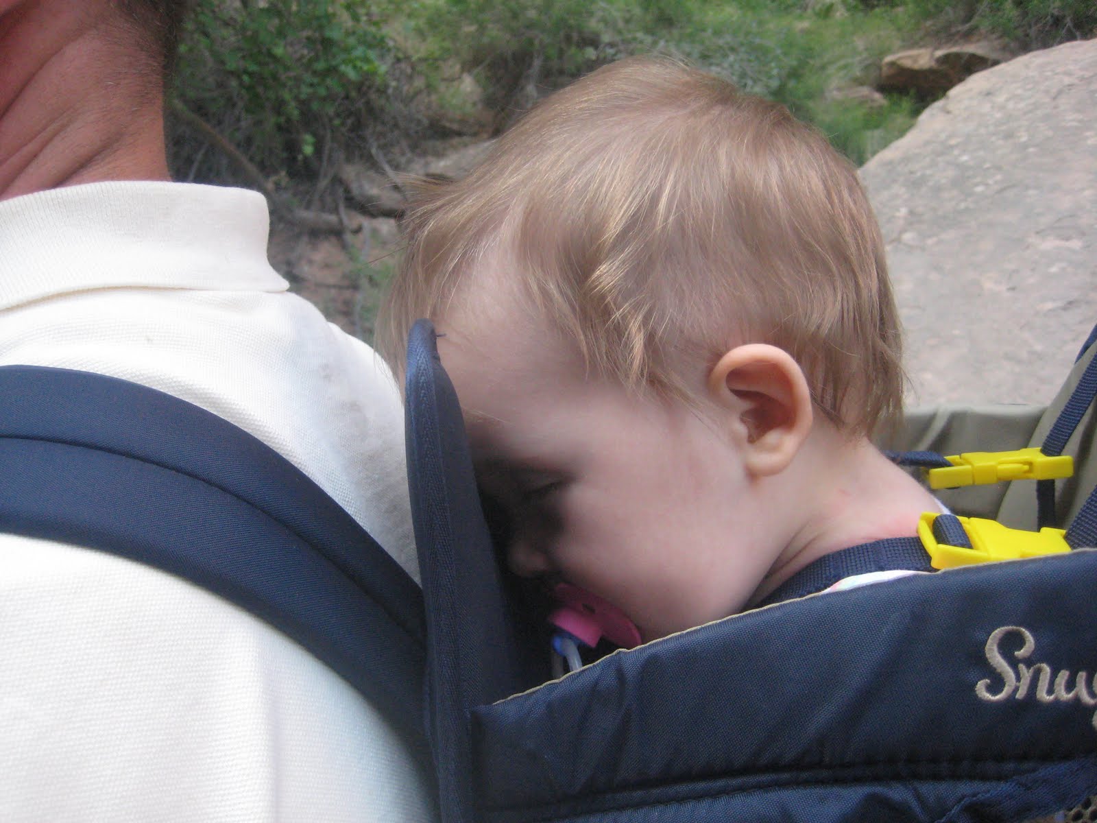 Tage and I stopped at Scout overlook. We couldn't take Tage any further because the hike is very dangerous. It requires trails that drop off on both sides and you have to hold onto chains to climb up to Angels Landing. So I stayed with Tage and we ate our snacks. A squirrel tried to eat our food. Tage was freaking out, he thought the squirrel was going to bite him. Then I ended up carrying him 3/4 of the way down the trail. He was wiped out. My knees were shot from carrying him down the steep trails.